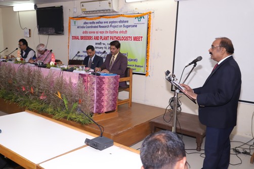 The Zonal Breeders and Plant Pathologists Meet-2020 has been organized at Navsari Agricultural University, Navsari (Gujarat) on January 10, 2020. Development of a sugarcane variety takes about 10-12 years. In order to reduce this duration, at least by one year and to decide technical programme before commencement of planting season in the north-west, north-central, north-east and east coast zones, the Breeders’ and Plant Pathologists Meet was held under the chairmanship of ADG (CC). The improved genotypes in IVT were screened for promotion to AVT, after review of performance at different centers.