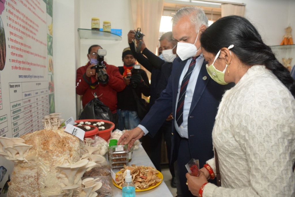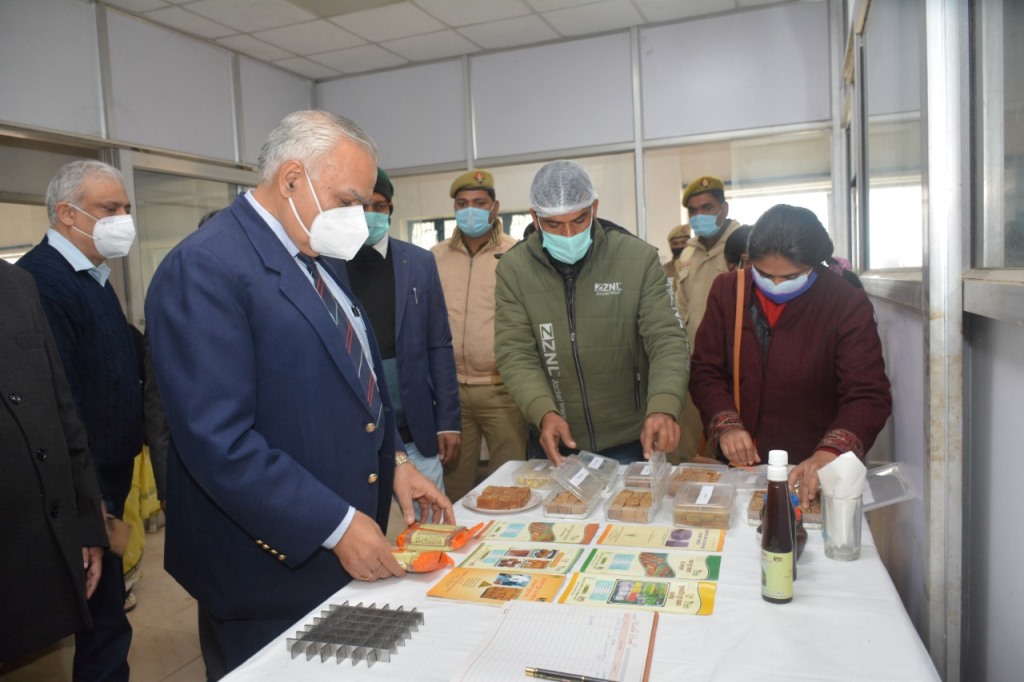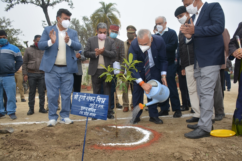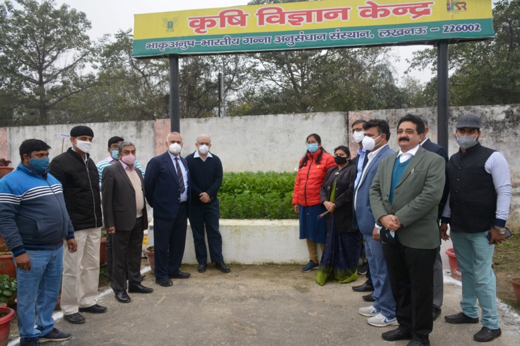 Hon’ble Chief Secretary, Uttar Pradesh, Sh. Durga Shankar Mishra, visited ICAR-Indian Institute of Sugarcane Research and its Krishi Vigyan Kendra, Lucknow. He was accompanied by Sh. Devesh Chaturvedi, Additional Chief Secretary, Agriculture, Govt. of Uttar Pradesh. Appreciating the efforts of IISR in research and on and off-campus training imparted to the farmers, Shri Mishra suggested that all the training programmes should be conducted in hybrid mode so that the farmers residing at distant places can also attend the training in virtual mode and accrue the benefits of training by increasing their farm income. He advised the Scientists to disseminate success stories of the progressive farmers through Facebook, WhatsApp and YouTube etc. Shri Mishra advised the Scientists of the Institute to make videos of various technologies and upload the same on YouTube for dissemination among the masses. Shri Mishra visited Farm Machinery Bank, Nursery raising Unit, Vermicompost, Dairy Unit, Vegetables Demonstration Unit, Nutrition Garden, Roof Top Gardening, Bee keeping Unit, mushroom production Unit and exhibition. He also visited the sites of Integrated Farming System Trial and Jaggery Unit of the Institute. He appreciated the work done at the Krishi Vigyan Kendra. At the outset, Dr. A.D. Pathak, Director, ICAR-Indian Institute of Sugarcane Research, Lucknow welcomed the Guests and narrated about the R & D achievements of the Institute. Dr. A.K. Dubey, Head, KVK, IISR, Lucknow and all the Subject Matter Specialists showed the various technologies at KVK to the visitors. Sh. Ashwini Kumar Pandey, Chief Development Officer, Lucknow; Dr. Vivek Singh, Director Agriculture, UP; Dy. Director (Agriculture), Dy. Director (Plant Protection), Dy. Director (Ag. Extension), District Agriculture Officer and other Senior Officers of U.P. Government and IISR, Lucknow were also present on this occasion.