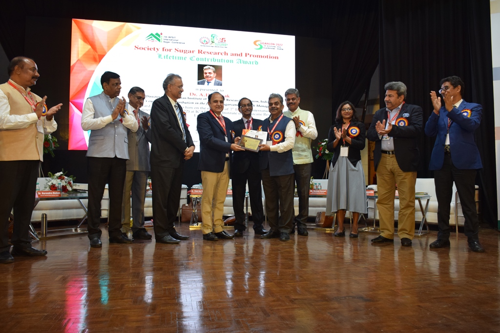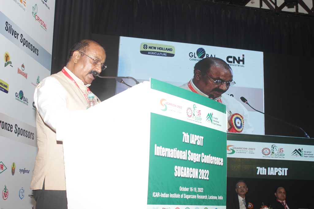 Four days International Conference- SUGARCON 2022 on “Sustainability of Sugar and Integrated Industries: Issues and Initiatives” was jointly organized by ICAR-Indian Institute of Sugarcane Research, Lucknow; Society for Sugar Research and Promotion (SSRP) and Association of Professionals in Sugar and Integrated Industries (ISPSIT) at Lucknow. Speaking as Chief Guest in the inaugural function on 16th October, 2022, Dr. T.R. Sharma, DDG (CS), ICAR New Delhi described sugarcane as a major contributor to the Indian economy and congratulated all the delegates on the World Food Day and urged the Scientists for development of climate – resilient, nutrient and water efficient varieties, value added products and development of new products from sugarcane juice, jaggery, molasses, ethanol and others as essential component of secondary agriculture. Dr. Sharma also advised sugar industry to participate in research in PPP mode by providing financial assistance to sugarcane research institutes. Dr. Sharma expressed the hope of developing new products through genome editing in sugarcane and releasing them after addressing the bio-safety issues. Dr. R.K. Singh, ADG (CC), ICAR expressed concern over coverage of more than 50% of the global cane area by only 10 varieties of sugarcane and said that in India also, more than 70% cane area is under two varieties namely Co 0238 and Co 86023.