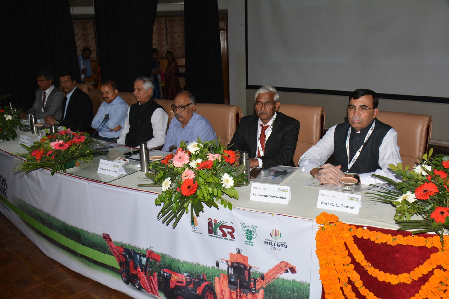 Dr. R. Viswanathan, Director, ICAR-IISR, Lucknow highlighted various farm machineries developed by the Institute for planting, weeding, earthing-up, spraying of pesticides, harvesting and ratoon management for the mechanization of sugarcane cultivation. He advised the farmers to reduce the cost of cultivation of sugarcane and increase their income by adopting them. At the outset, Mr. Aditya Jhunjhunwala, President, Indian Sugar Mill Association (ISMA) welcomed all the guests and participants and highlighted the importance of mechanical harvesters in India for sugarcane harvesting. He informed that the mechanical harvesters are very popular in Brazil, Thailand and Australia. In India, sugarcane harvesters are gaining popularity in Maharashtra, Karnataka, Tamil Nadu and Andhra Pradesh but sugarcane is still harvested by labour in sub-tropical India. Sh. R.L. Tamak, Chairman, Sugarcane and Sugar Sub-Committee, ISMA presented an exhaustive presentation on “Transforming agriculture through mechanization.” Sh. Tamak expressed the view that mechanization in sugarcane cultivation would solve the problem of labour scarcity for various farm operations in India, timely execution of farm work, saving of time and money and benefits of proper ratoon management and appealed the policy makers of the central and state governments to make a proper policy in this regard., Dr. A.K. Singh, Principal Scientist and Organizing Secretary of the National Seminar gave detailed information about various agricultural machinery developed by the Institute for mechanization of sugarcane agriculture. Shri S. Mohanty, Director General, Indian Sugar Mill Association proposed the vote of thanks. About 300 delegates from different parts of the country including various office bearers of the Indian Sugar Mills Association, officials of sugar mills, leading manufacturers of agricultural machinery and sugarcane scientists from across the country participated in the seminar. Major agricultural machinery manufacturers like Shaktimaan and Mahindra & Mahindra also displayed various agricultural machinery including harvesters on the occasion. The status of mechanical harvesting of sugarcane in different parts of the country including Tamil Nadu, Andhra Pradesh, Madhya Pradesh and Uttar Pradesh were presented by Dr. Sushil Solomon, Mr. K. Nagendran, Mr. John Bosco, Mr. A.A. Zaidi, Mr. Senthil Kumar Chinnusamy, Mr. Mullapudi Narendranath. Status of mechanization in sugarcane agriculture was also presented by Shaktiman Agro, Mahindra and Mahindra and CNH Industrial.