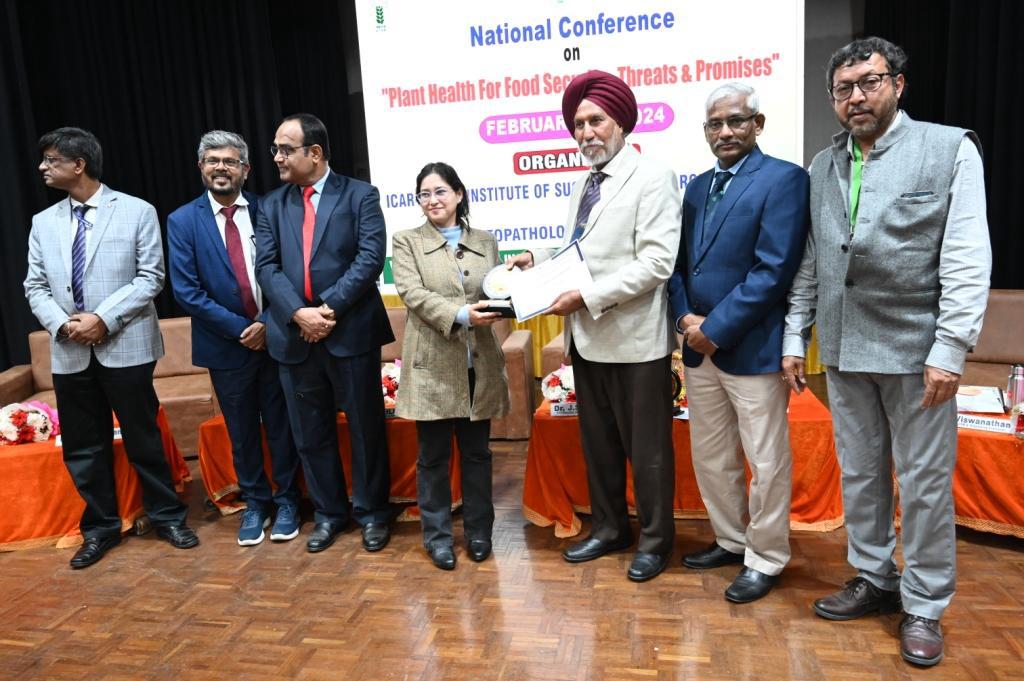 The addresses of the dignitaries were followed by the release of Conference Souvenir and a book on “Concepts of Plant Pathology & Diseases Management”. A number of awards including lifetime achievement award and IPS recognition awards were presented to the scientists for their distinguished work. Some retired plant pathologists of ICAR-IISR, Lucknow were also felicitated for their distinguished services.