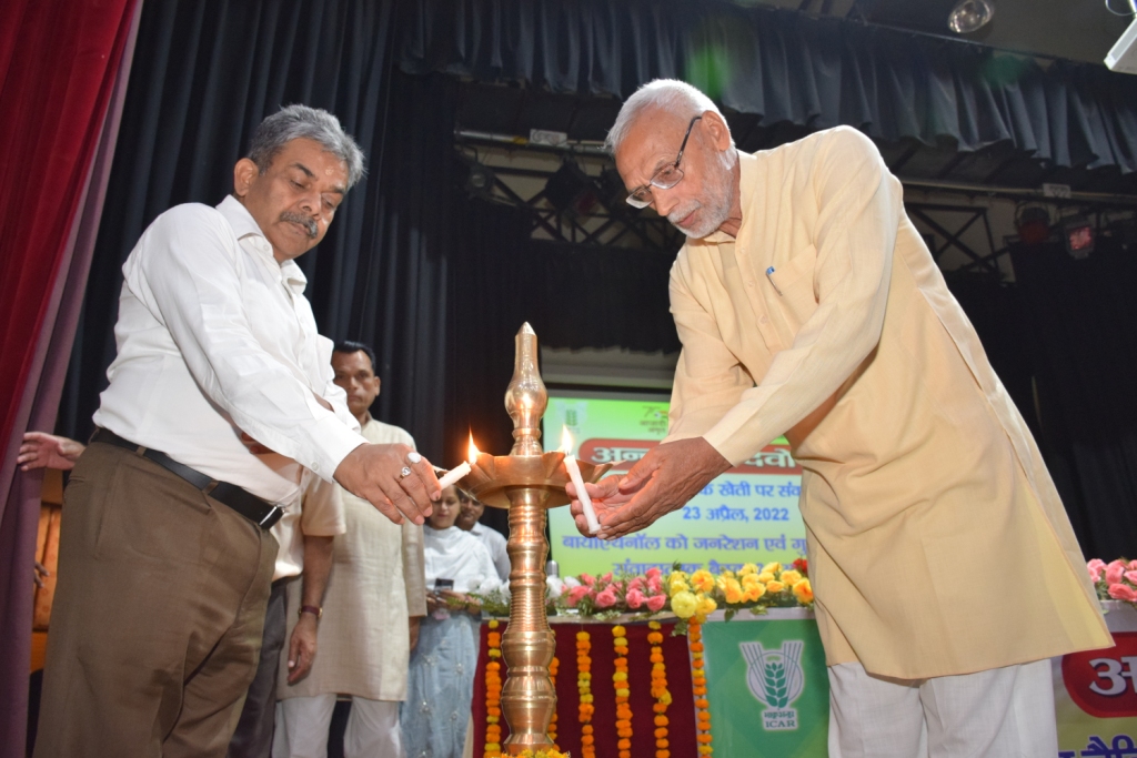 “आजादी का अमृत महोत्सव” के अंतर्गत अन्नदाता देवो भव: अभियान में 23-24 अप्रैल 2022 को भारतीय गन्ना अनुसंधान संस्थान, लखनऊ द्वारा मेगा कार्यक्रम आयोजित किया गया। इस मेगा कार्यक्रम में 23 अप्रैल 2022 को प्रकर्तिक एवं जैविक खेती पर संवादात्मक बैठक आयोजित किया गया, जिसमें मुख्य अतिथि पद्मश्री भारत भूषण त्यागी जी मुख्य अतिथि थे। उन्होने प्राकृतिक खेती को व्यवहारिक एवं लोकप्रिय बनाने के लिए सोच बदलने पर ज़ोर दिया। श्री त्यागी ने प्रकृतिक खेती को पर्यावरण, मानव स्वास्थ एवं किसान हितैषी बताया। दिनाँक 24 अप्रैल, 2022 को बायो – इथनॉल, बिजली सह-उत्पादन तथा गुड़ उत्पादन पर एक संवादात्मक बैठक आयोजित किया गया। इस कार्यक्रम में भारतीय कृषि अनुसंधान परिषद, नई दिल्ली के उप-महानिदेशक (कृषि प्रसार) डॉ. अशोक कुमार सिंह मुख्य अतिथि थे। उन्होने गन्ना को बहु उपयोगी फसल बताया तथा इससे बनने वाले इथनॉल, बिजली, गुड़, खाद एवं अन्य उत्पादों के कारण गन्ना किसानों को ऊर्जादाता बताया। इस अवसर पर संस्थान के निदेशक डॉ अश्विनी दत्त पाठक ने संस्थान द्वारा क्रियान्वित विभिन्न शोध एवं प्रसार कार्यक्रमों पर प्रकाश डाला। कार्यक्रम में उत्तर प्रदेश कृषि शोध परिषद के महानिदेशक डॉ संजय सिंह विशिष्ट अतिथि के रूप में उपस्थित थे। श्री राजा श्रीवास्तव, संयुक्त उपाध्यक्ष (गन्ना), डीसीएम श्रीराम शुगर लिमिटेड, नई दिल्ली कार्यक्रम में विशिष्ट अतिथि थे। कार्यक्रम के समन्वयक डॉ. अजय कुमार साह, प्रधान वैज्ञानिक ने कार्यक्रम की प्रष्ठभूमि, परिचय तथा महत्ता पर विस्तारपूर्वक जानकारी दिया। दो दिवसीय कार्यक्रम में प्रदेश के 7 जनपदों से 400 अन्नदाता किसानों तथा 150 वैज्ञानिकों एवं चीनी उद्धोग के अधिकारियों ने सहभागि किया। 23 अप्रैल, 2022 के कार्यक्रम का समन्वयन डॉ. विनय कुमार सिंह, प्रधान वैज्ञानिक ने किया। दो दिवसीय कार्यक्रम में विभिन्न विषयों पर वैज्ञानिकों, प्रगतिशील किसानों तथा उद्यमियों द्वारा विस्तारपूवक चर्चा किया गया। कार्यक्रम समन्वयक डॉ. अजय कुमार साह ने समापन पर धन्यवाद ज्ञापित किया।