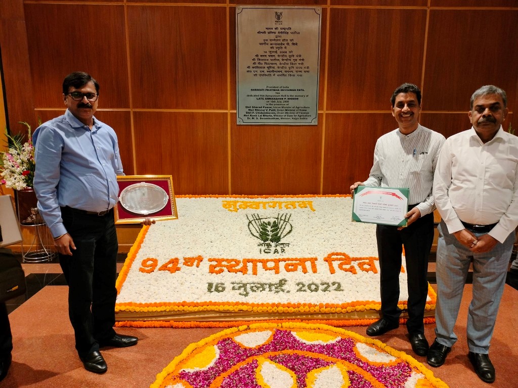 ए. पी. शिंदे हाल, नास काम्प्लेक्स, नई दिल्ली में 16 जुलाई 2022 को भारतीय कृषि अनुसंधान परिषद के 94वें स्थापना दिवस के अवसर पर एक भव्य समारोह में संस्थान की राजभाषा पत्रिका “इक्षु” को “ क” एवं “ख” क्षेत्र के बड़े संस्थानों की श्रेणी में गणेश शंकर विद्यार्थी हिन्दी पुरस्कार योजना 2021 का प्रथम पुरस्कार प्रदान किया गया। परिषद की स्थापना दिवस पर पुरस्कार वितरण समारोह में मुख्य अतिथि श्री नरेंद्र सिंह तोमर, माननीय केंद्रीय कृषि एवं किसान कल्याण मंत्री भारत सरकार; केंद्रीय मत्स्य, पशु पालन एवं डेयरी मंत्री श्री पुरषोतम रूपाला जी, केंद्रीय कृषि एवं किसान कल्याण राज्य मंत्री श्री कैलास चौधरी जी, सचिव, कृषि अनुसंधान एवं शिक्षा विभाग, भारत सरकार एवं महानिदेशक, भारतीय कृषि अनुसंधान परिषद डॉ. त्रिलोचन महापात्र; सदस्य, नीति आयोग डॉ रमेश चंद्रा; उपमहानिदेशक (प्रसार) डॉ ए. के. सिंह, तथा गणमान्य अतिथियों की गरिमामयी उपस्थिति में भाकृअनुप - भारतीय गन्ना अनुसंधान संस्थान के निदेशक डॉ. अश्विनी दत्त पाठक; राजभाषा प्रकोष्ठ के प्रभारी डॉ ए. के. साह एवं श्री अभिषेक कुमार सिंह, हिंदी अधिकारी ने यह पुरस्कार प्राप्त किया।