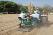 | Three-row sugarcane cutter planter (ground wheel driven) was developed for planting of sugarcane which performs all operations involved in cane planting at a spacing of 75 cm. It has effective capacity of planting of one ha in 3.5 to 4 hours, and saves approximately 70% cost of planting operation. |