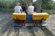 | A trench of about 25-30 cm deep is made by this planter. Two rows cane at 30 cm apart are placed at the bottom of the trench. Fertilizer and insecticide are dispensed. Cane setts are covered with the soil. Sub-surface lateral for drip irrigation system is also laid. All the above operations are carried out in a single pass. It can cover one hectare in 3-4 hours depending upon plot size. The cost of operation is one third of the conventional planting |